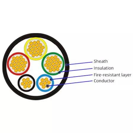 Tűzálló réteg (Core Soul): A vezetőt tűzálló csillámszalaggal szorosan becsomagolják. Ez a kulcsa a tűzálló funkció elérésének. Forró lángban a csillámszalag erős, kerámiaszerű szigetelőhéjgá ég, amely körülveszi a vezetőket és megakadályozza a rövidzárlatokat, így a szigetelés elégetése után is fenntartja az elektromosságot.