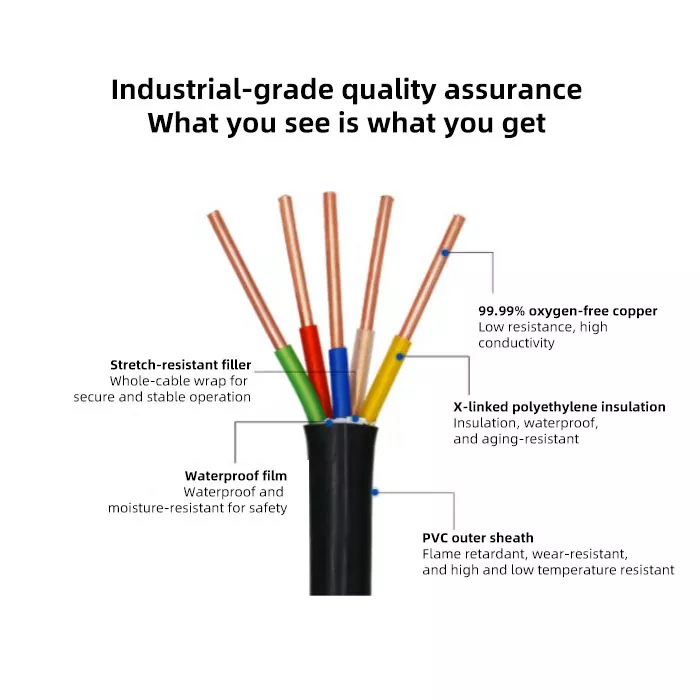 2. Magas hőmérsékletű stabil működés: Az XLPE szigetelés biztosítja, hogy a tűzálló XLPE szigetelt PVC-burkolatú tápkábel stabil legyen normál magas hőmérsékletű környezetben vagy túlterhelés esetén.